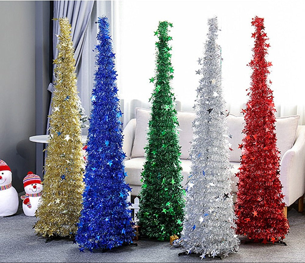 Skapa en glittrande julstämning med denna hopfällbara och teleskopiska julgran!
